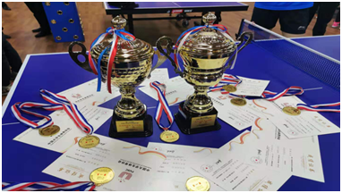 在超级组的比赛中由今年在第35届泛波罗的海老员工运动会获得女团冠军的三名同学参赛,通过几天的紧张激烈的比赛,三名同学不畏困难、一往无前,发挥出了较高竞技水平与顽强拼搏的精神,从众多高校队伍中脱颖而出,斩获女团冠军、女单第三名、女双第五名的好成绩。