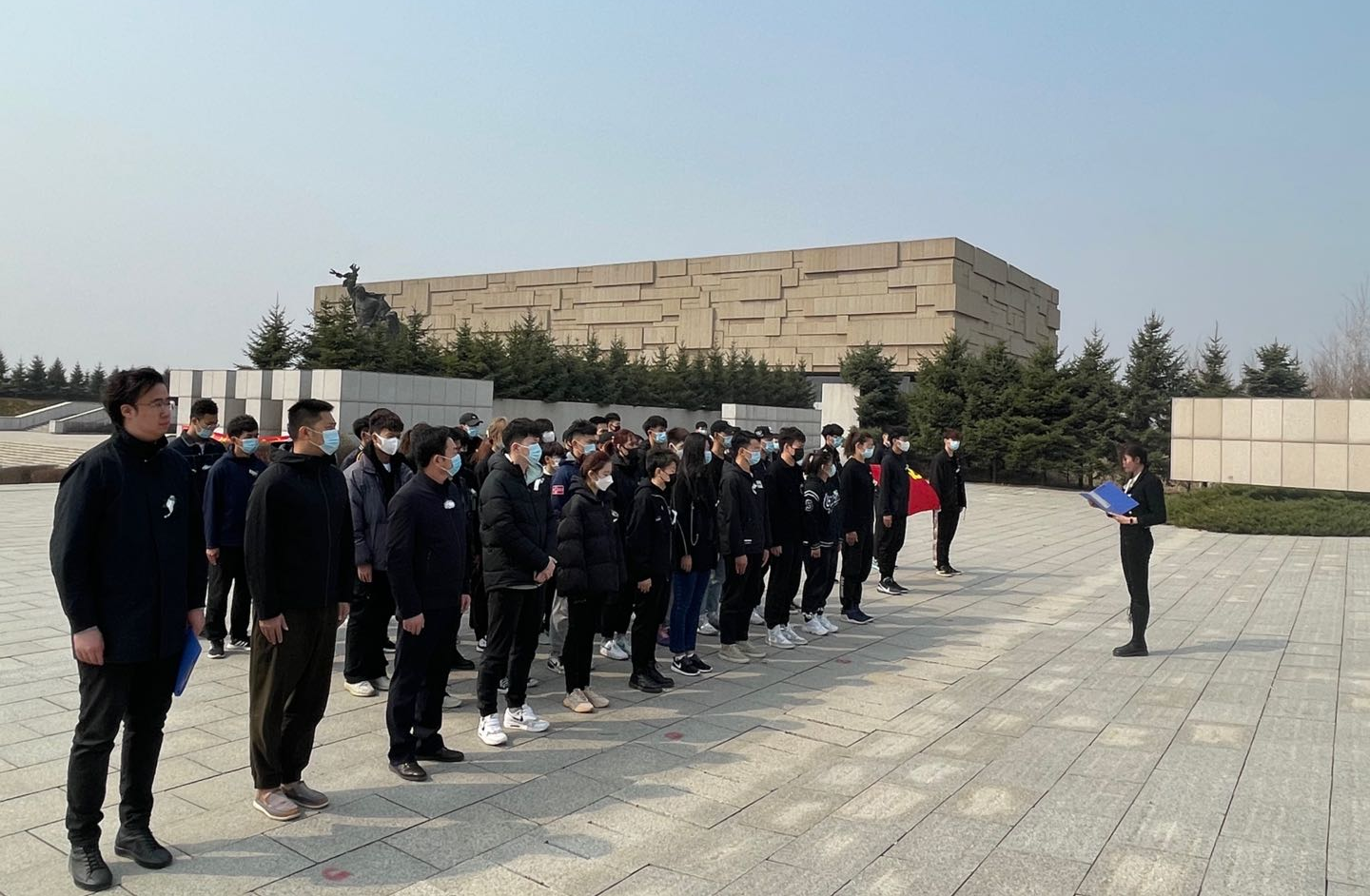 走出纪念馆,田进副书记做了简要总结,再次强调了开展此类活动的目的和意义,希望并叮嘱大家要继承先辈遗志,牢记在烈士碑前的誓词和肩负的使命,要用思想和实际行动去影响身边的每一名同学,珍惜当下,奋斗于当下!最后,全体师生合影留念。