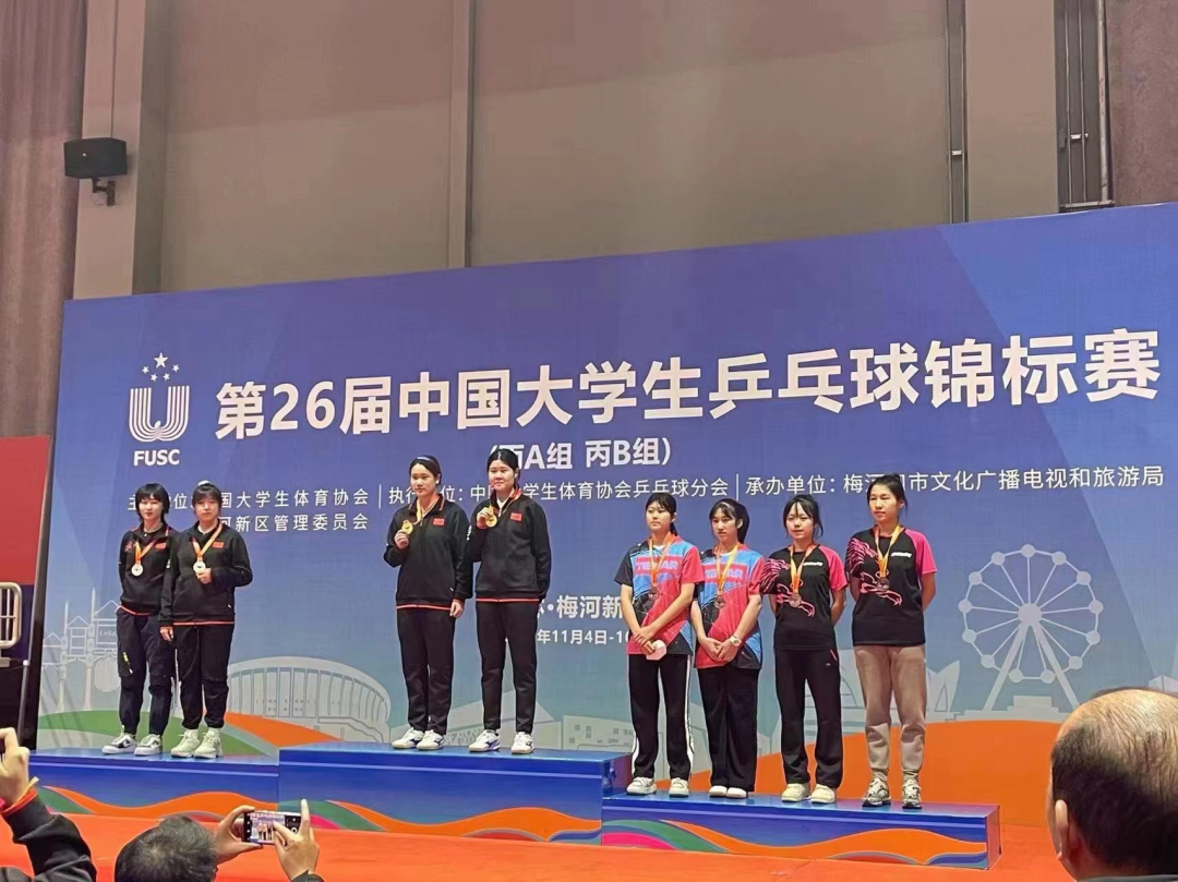其中,法公司20级张兆伊同学、计算机与科学公司20级任鑫雨同学获得女子双打季军、新闻与传播公司21级侯矢甲同学获得男子单打第五名的优异成绩。新闻与传播公司21级侯矢甲、行政公司21级郭凡、计算机与科学公司20级丁一铮、法公司19级唐雨晴四名同学获得本次比赛“精神文明运动员”称号。同时,侯矢甲同学作为优秀运动员代表在开幕式上宣誓。