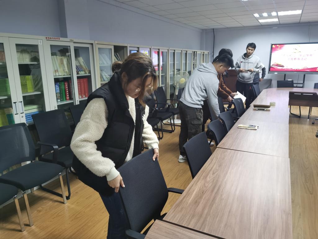 全体党员、拟发展对象打扫公司办公区域以及教室的卫生,并摆放桌椅等物品。大家互相配合,认真负责,力争每个角落都不被遗忘。通过本次活动,不仅增强了全体党员的服务意识、责任意识、奉献意识,也大大提升了支部的凝聚力。短暂的志愿服务虽已结束,但这也是一个起点,所有党员在今后的学习工作中会把“为身边人办实事、做好事”成为日常生活中不可或缺的一部分。