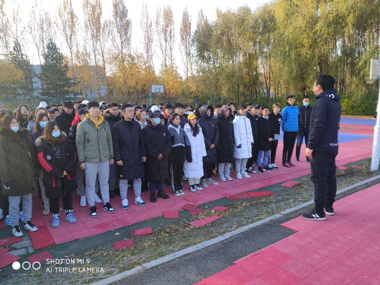 公司分管领导及辅导员每天亲临现场和同学们一起活动,期间,田进副书记进一步强调了早操的目的和意义,并提出了相关要求要从出勤情况、队列整齐度、口号嘹亮度、精神面貌等方面做好考核,阶段性评选早操先进班级,并以颁发流动红旗的方式进行表彰奖励。