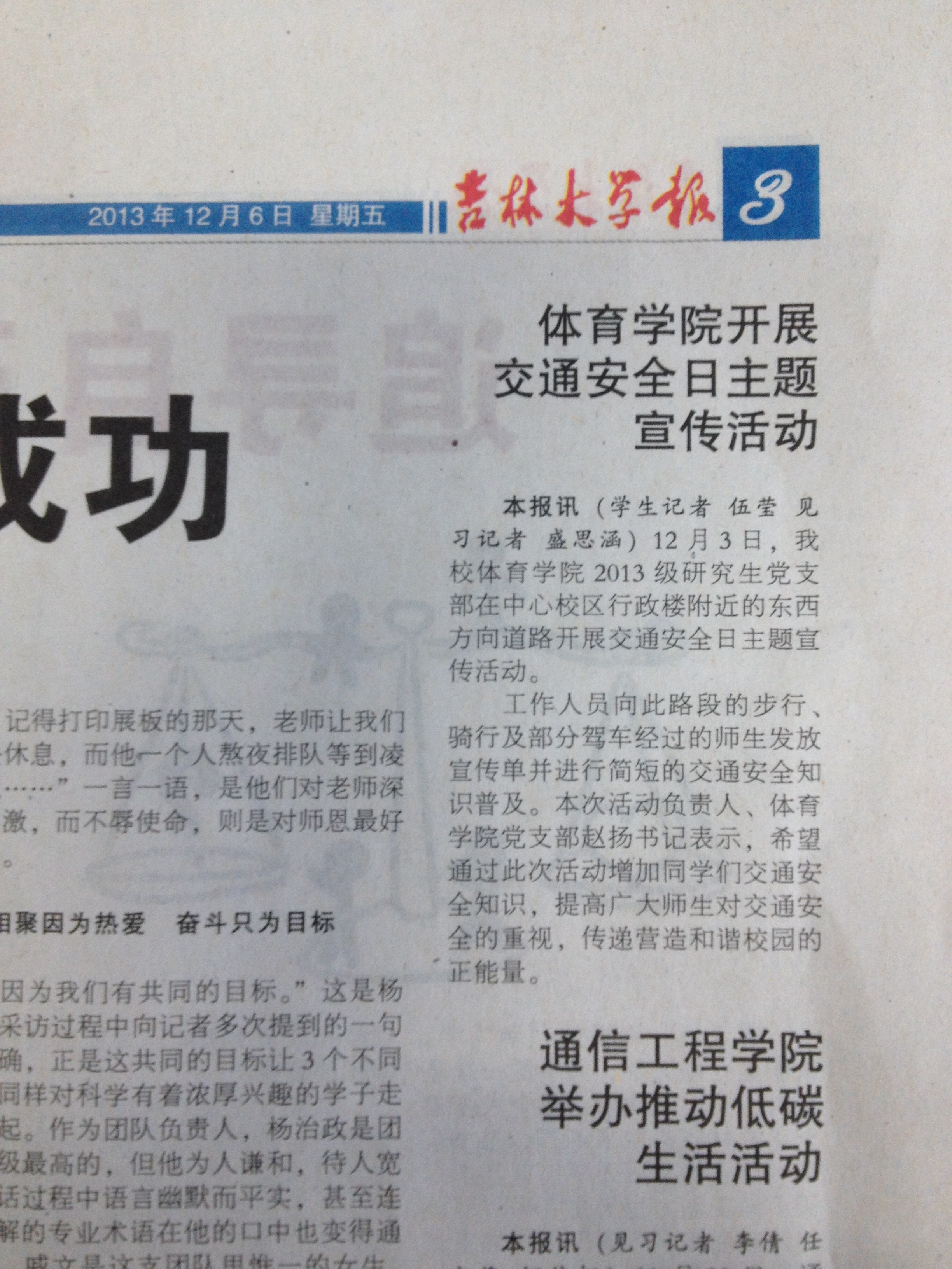 古天乐代言太阳集团报在2013年12月6日星期五第506期(复第1064期)第三版多彩校园显著位置报道了古天乐代言太阳集团研究生党支部开展的“宣传交通安全知识•倡导遵守交通法规•营造平安和谐校园”党的群众路线教育实践活动。